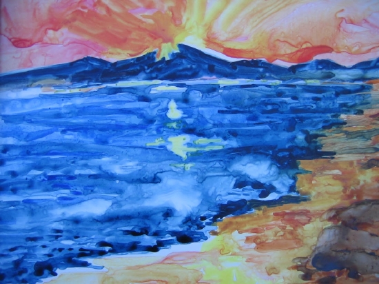 Watercolor on Yupo- 10" x 14"; 19" x 23" framed